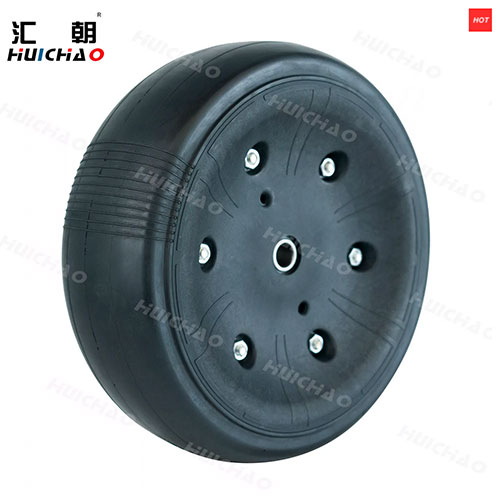 Heavy‑duty 12×4 inch (300×100 mm) planter closing press wheel assembly, model 65003084, featuring a durable rubber tire and sturdy construction to provide firm soil closing and seed‑to‑soil contact for seed drills, planters, and grain drills.